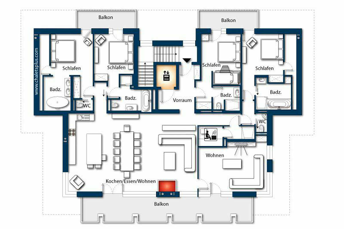 TV, radio, DVD Blu-ray player, Ipod docking station, internet Wi-Fi, iron and ironing board, washing machine and a dryer – for common use, balcony /terrace facing south, ski storage with a ski boot dryer, 2 parking places in the garage, headroom 2.10 m